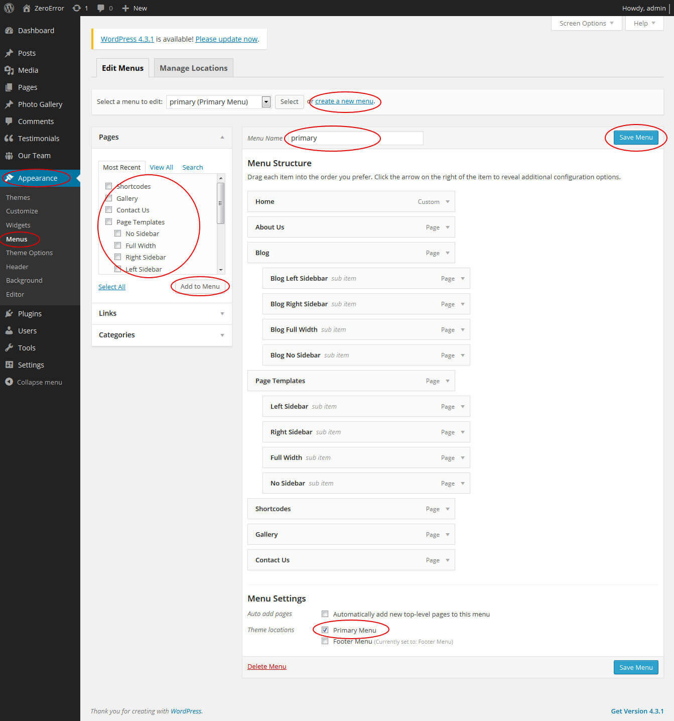 - Click Save Menu after adding required pages, categories in the menu