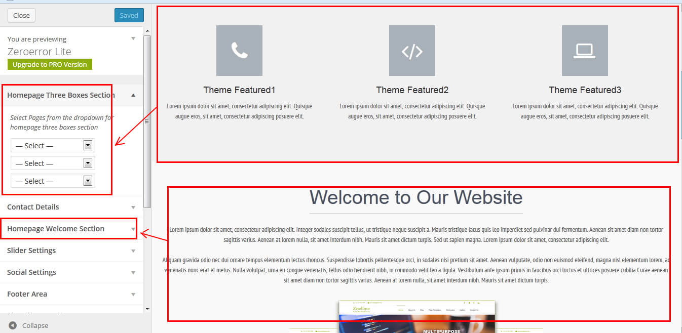 After activating the ZeroError Lite theme, setup homepage using following